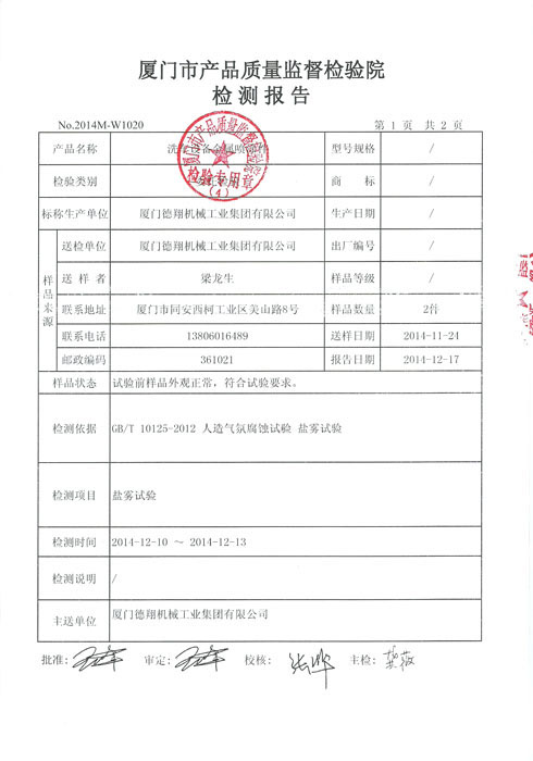 質(zhì)量監(jiān)督檢測報告-往復(fù)式